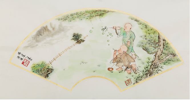 小和尚系列作品是一郎先生将佛人性化的表现——佛即是人,佛道即人道。悟道先从人道,慈悲为怀。一郎先生将小和尚活灵活现的表现,是用工中带写的笔法,充满童趣;也是一郎先生胸襟的体现,皆堪经典之作。